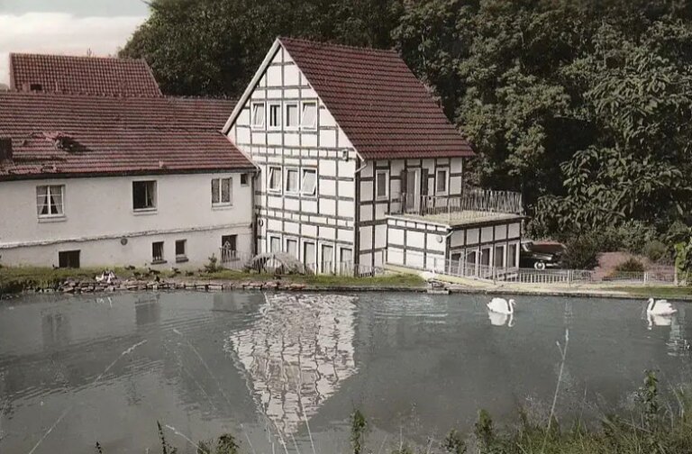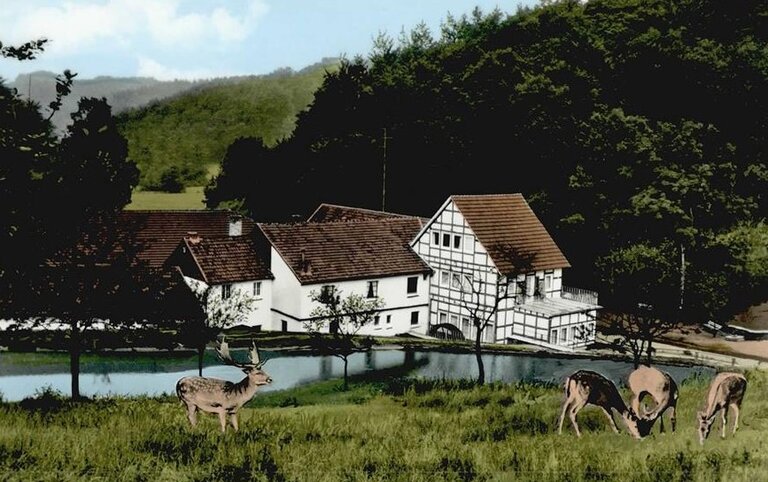 • Im Jahr 1954 wurde das letzte Korn und Schrot gemahlen. Die Mühle wurde danach zum Gästeraum umgebaut. Infolge des Umbaus kam der Saalanbau und die Kegelbahn hinzu.